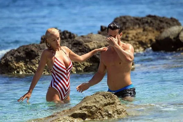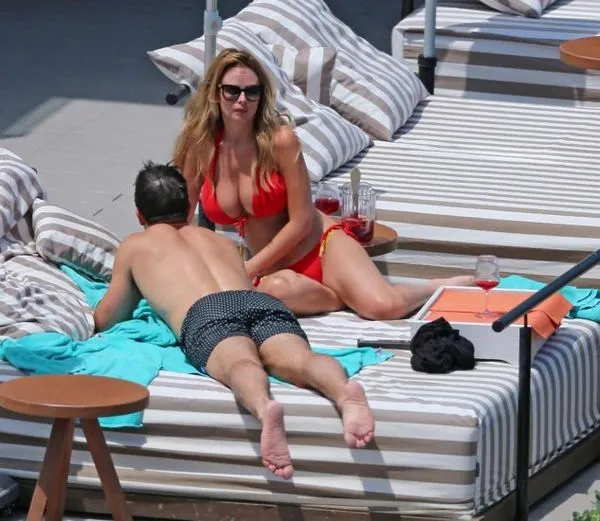 Prsata plavuša Rhian Sugden nosi crveno-bijeli kupaći kostim na odmoru sa svojim muškarcem Štit , Purica. Pokazala je svoju ne baš savršenu bikini figuru i celulit na guzici. Ali ipak, Rhian je vruća kao kurac!